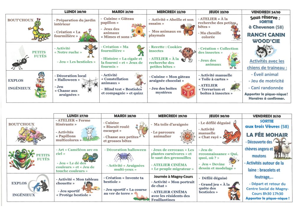 Voici les activités qui seront proposées aux enfants, pour cette période des mercredis.