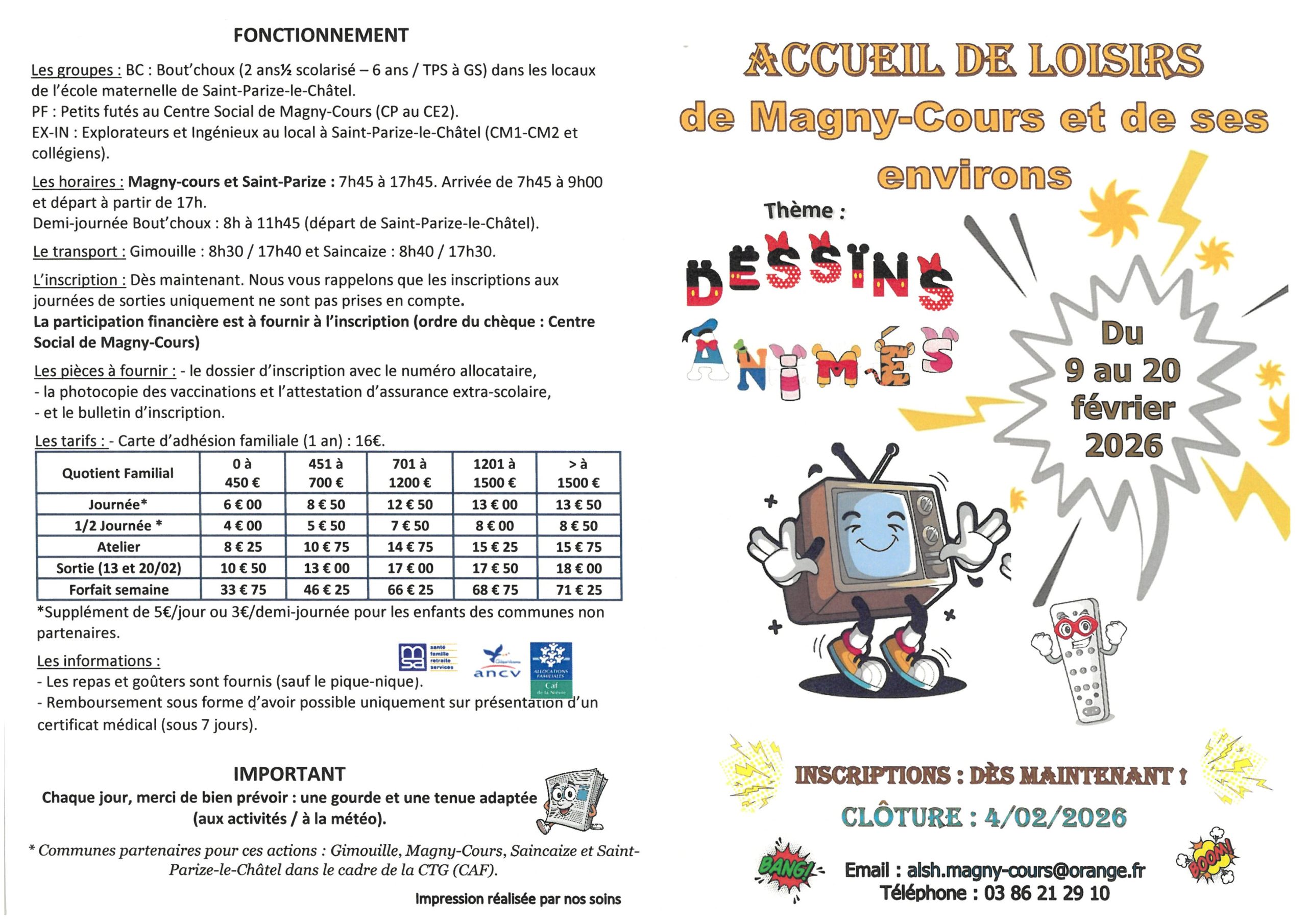 Voici la plaquette de l’accueil de loisirs des vacances : du 8 au 19 février 2021.