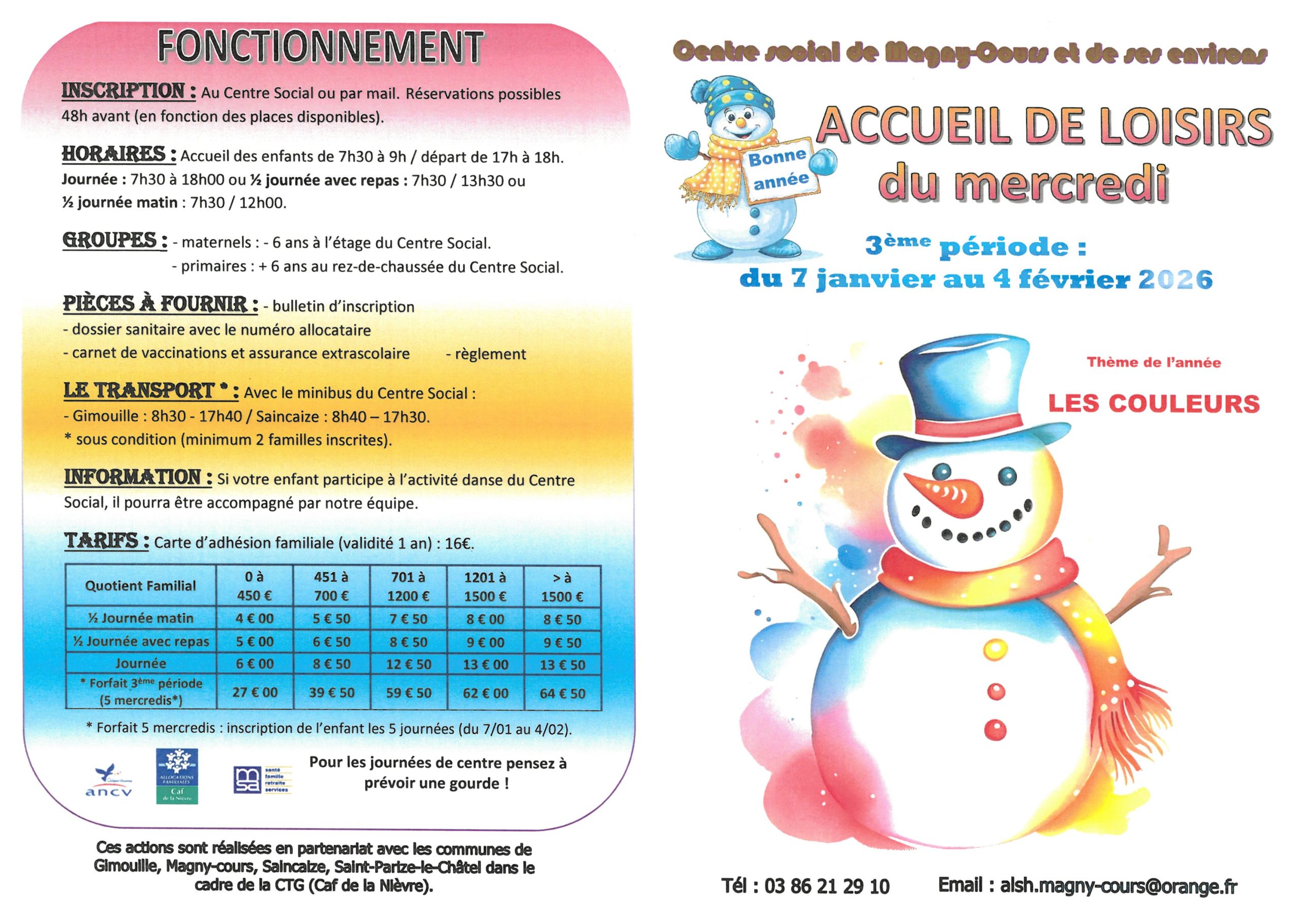 • Accueil de loisirs du mercredi 7 janvier au 4 février 2026 « Les Couleurs »