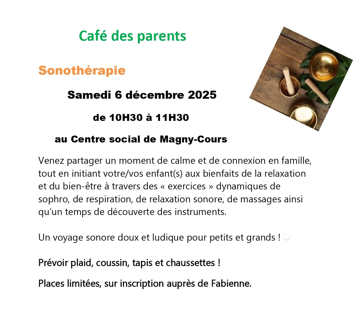 Un samedi par mois de 10 h 00 à 11 h 30, sera proposé le café des parents, au Centre Social.