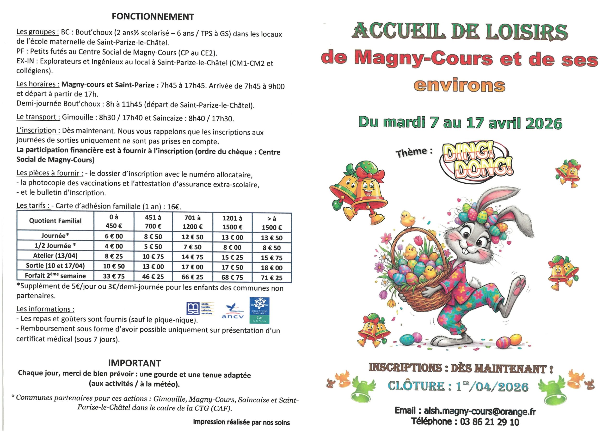Accueil de loisirs, vacances du 7 au 17 avril 2026 Thème : DING!DONG!