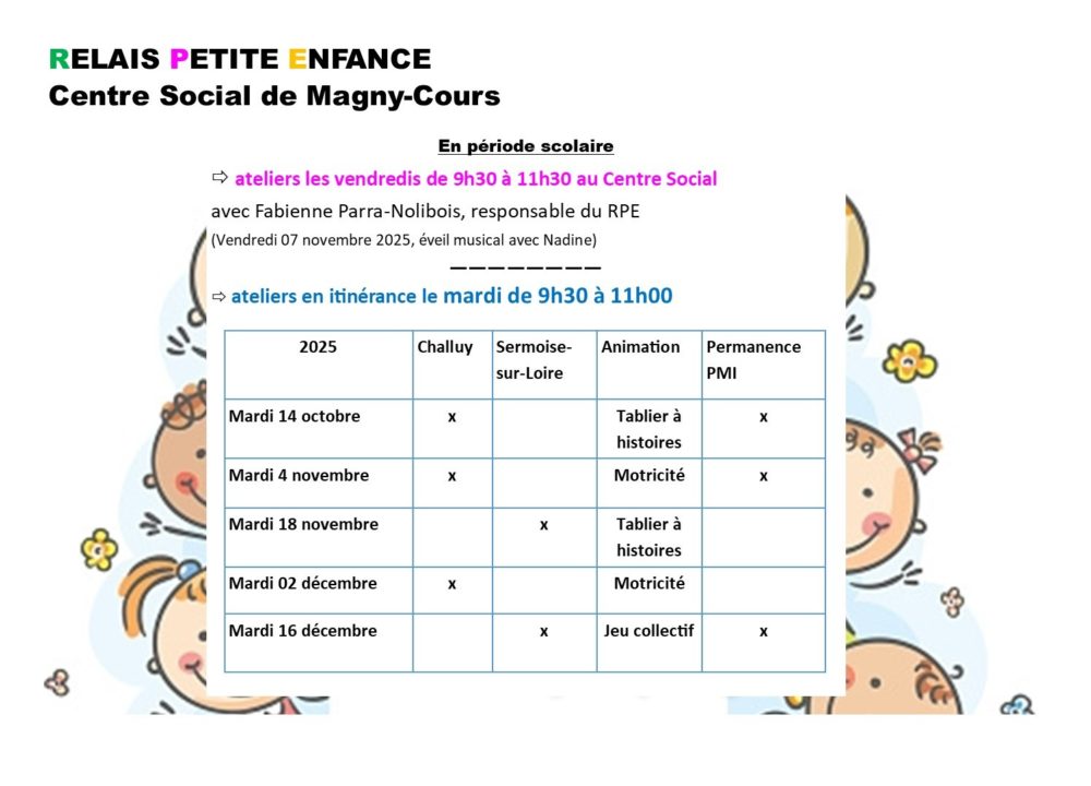 Le Relais Petite Enfance est un lieu de rencontre, d’échange, d’écoute, d’informations, d’animations, au service des assistants maternels, des jeunes enfants et des parents.